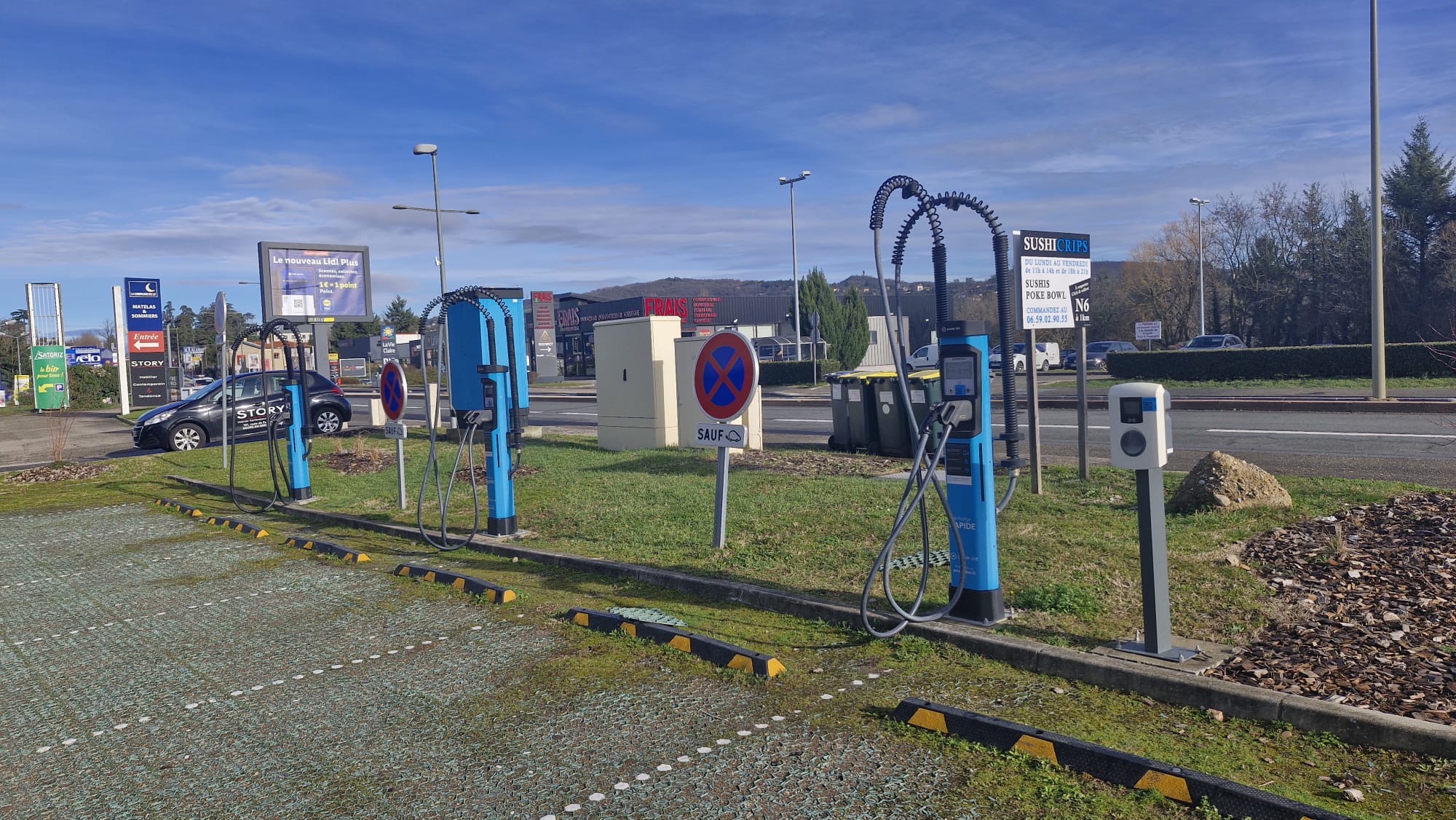 Le parking se compose d’une quinzaine de places dont 6 munies de bornes de recharges électrique.