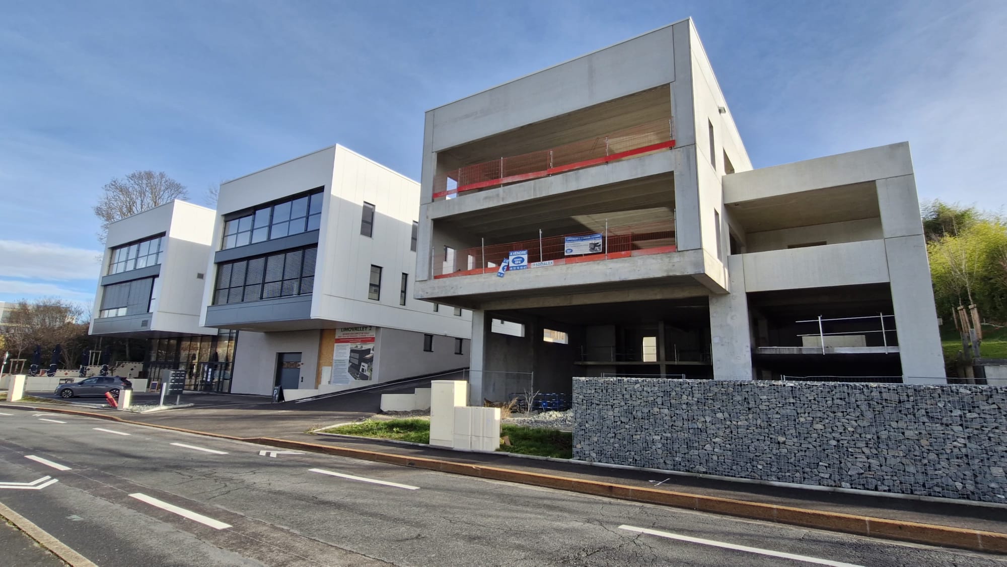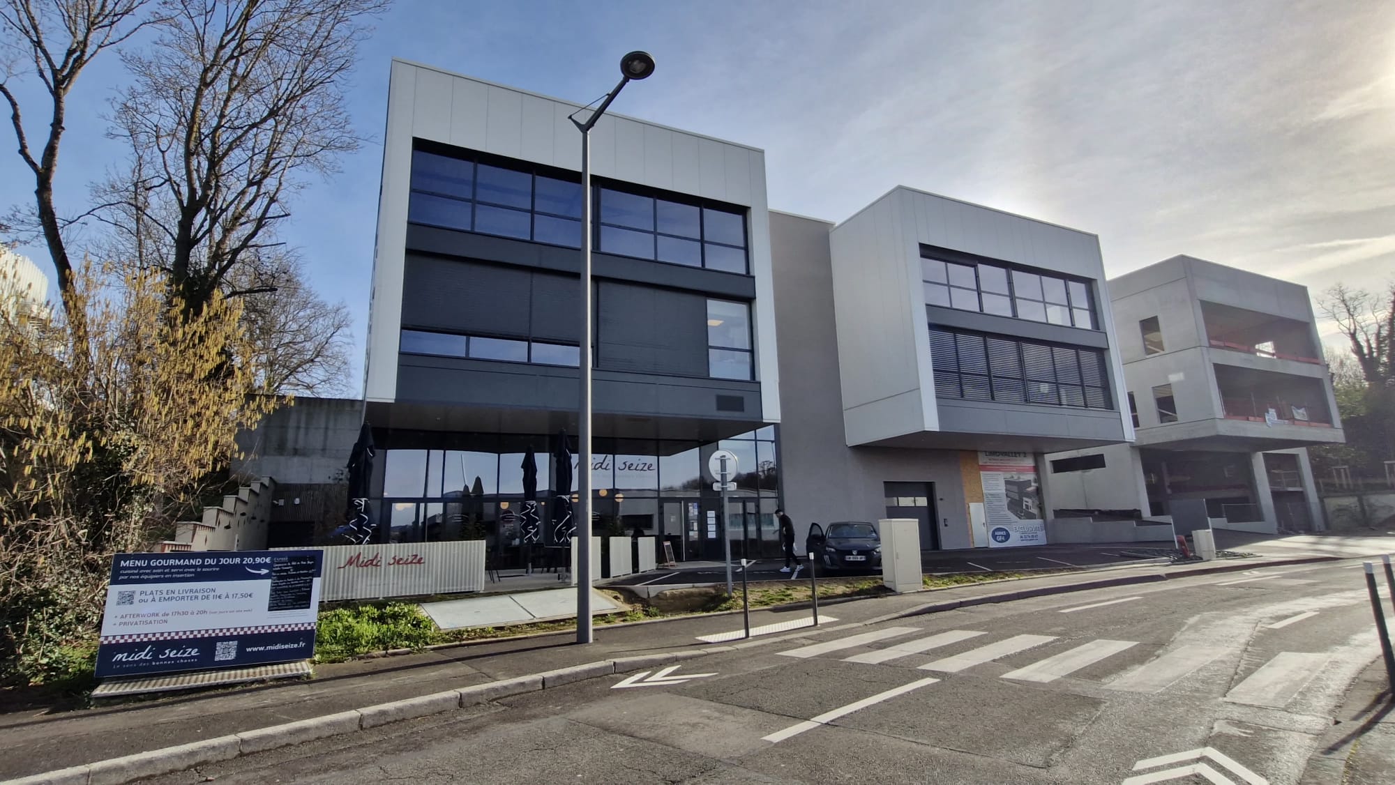Actuellement une crèche, un restaurant (Midi Seize), et In-pharm, société d’ingénierie sont présents dans le bâtiment blanc.